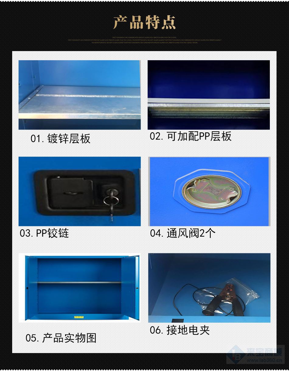 *嚴格按照OSHA規范,柜身設有靜電接地傳導端口,方便連接靜電接地導線。