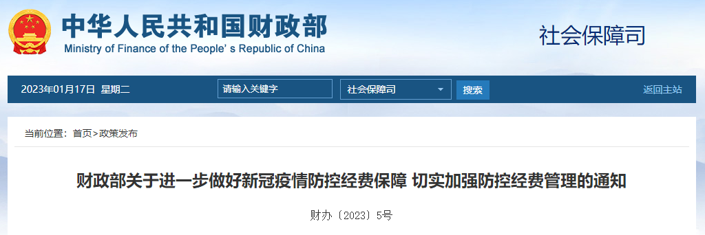 1月16日,國家財政部發布《關于進一步做好新冠疫情防控經費保障 切實加強防控經費管理的通知》(以下簡稱《通知》)。