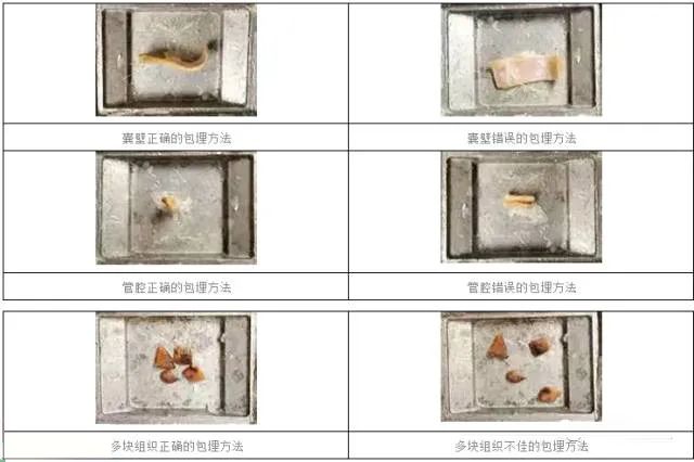 組織的包埋關(guān)系到診斷的準(zhǔn)確性,如囊壁、管腔組織等組織必須豎直包埋。包埋時(shí)如果是成堆組織,一般采用組織的最大面包埋,如果組織是平切的,應(yīng)該按照醫(yī)生取材的要求,把朝下的面作為包埋面。小塊多顆組織,應(yīng)盡量放在一起,并保證在一個(gè)平面上。對于一些需要切出層次的標(biāo)本如:胃黏膜活檢標(biāo)本,不能按一般的規(guī)律取最大包埋面,應(yīng)采取窄長的面豎包;如果是U,V字形的,也應(yīng)該按U,V字的形狀豎包,這樣才能切到組織的全層。