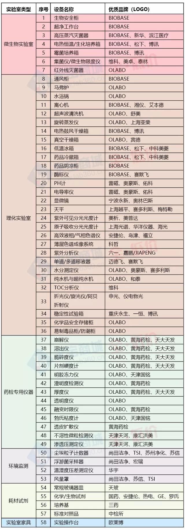實驗室類型主要包括:微生物實驗室、理化實驗室、藥檢專用儀器、環(huán)境監(jiān)測、藥材試劑、實驗室家具等