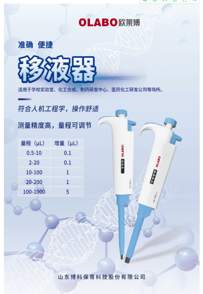 國產(chǎn)OLABO,B系列單道可調(diào)式移液器100-1000μl