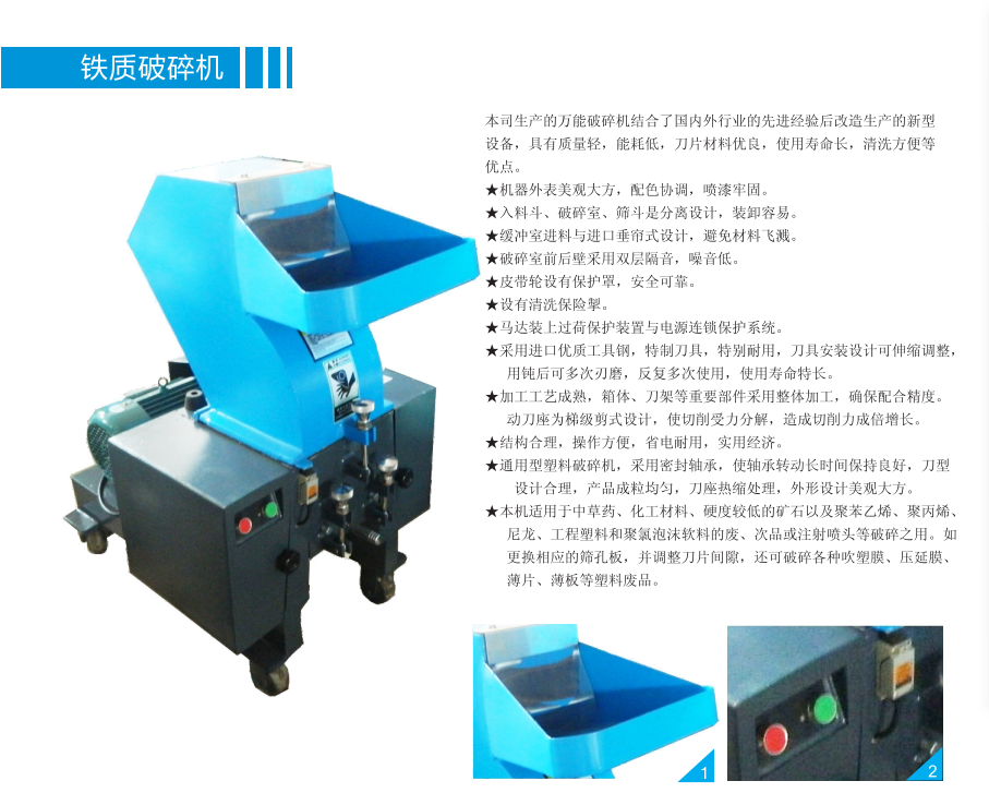 E-180F鐵質破碎機采用進口優質工具鋼,耐用