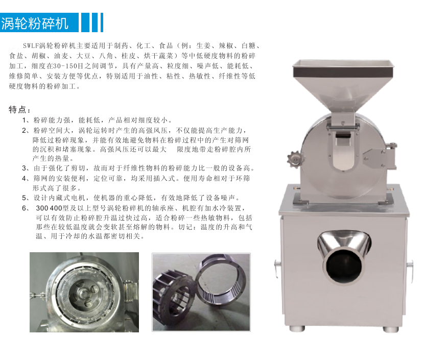 SWLF-200渦輪粉碎機特別適用于油性、粘性、熱敏性、纖維性等低硬度物料的粉碎加工