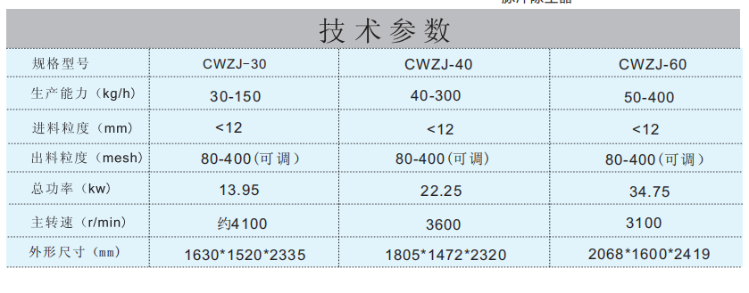 CWZJ-30超微機組高精度超微粉碎,超微粉碎機,無篩無網。