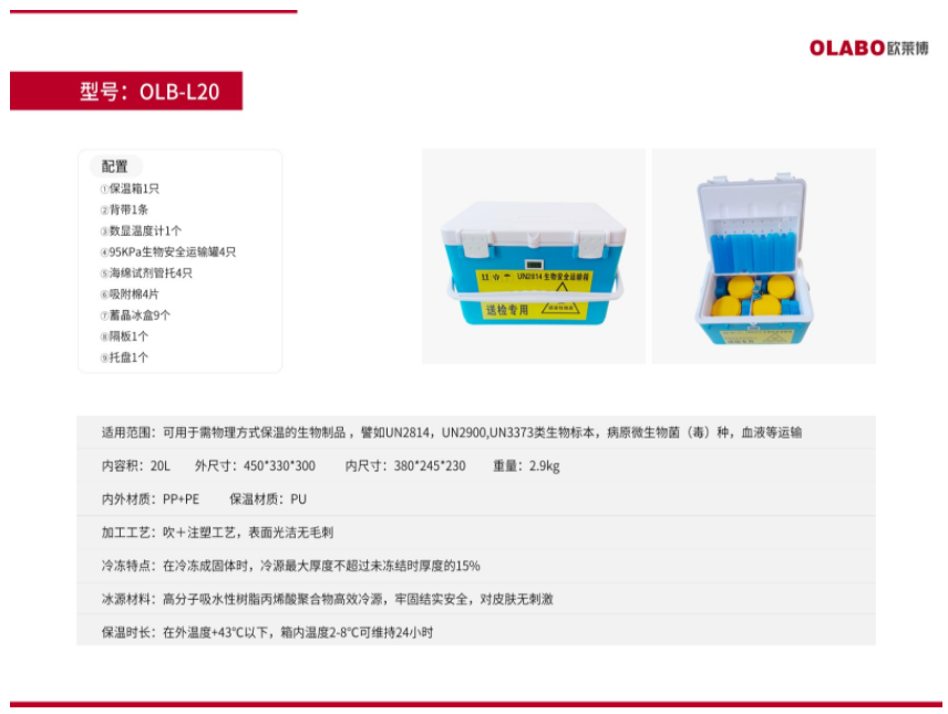 OLABO歐萊博生物安全運(yùn)輸箱OLB-L20
