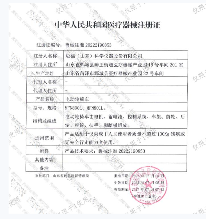 批準(zhǔn)文號:魯械注準(zhǔn)20222190853