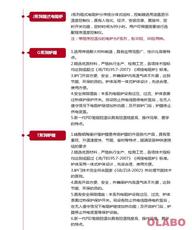 采用先進(jìn)技術(shù)、優(yōu)質(zhì)原料、進(jìn)口核心部件、先進(jìn)的生產(chǎn)工藝、嚴(yán)格的檢測(cè)生產(chǎn)的箱式電阻爐。其各項(xiàng)技術(shù)指標(biāo)均達(dá)到國(guó)際先進(jìn)水平。可廣泛應(yīng)用于科研、教學(xué)、工礦企業(yè)中的實(shí)驗(yàn)室作熱處理、熔解、燒結(jié)、煤灰熔融性的測(cè)定等。